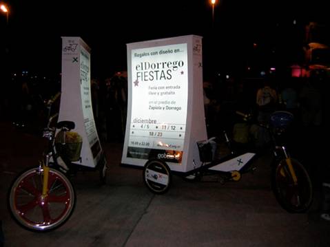 Su velocidad como bicicleta proporciona que el número de impactos visuales sea mucho mayor al de otros soportes, por sus grandes dimensiones para los mensajes publicitarios, al no pasar ni inadvertido ni muy rápido y por la simpatía que despiertan los vehículos, lo que le hace aumentar su efectividad.